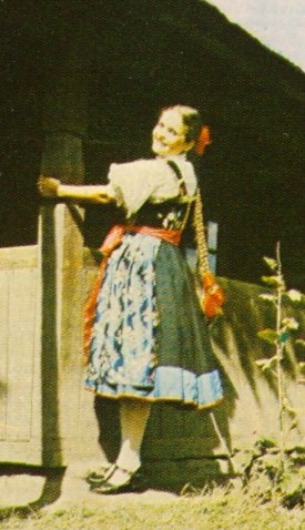 Cieszyna, II pol. XIX w. na pierwszym planie dziewczyna w stroju